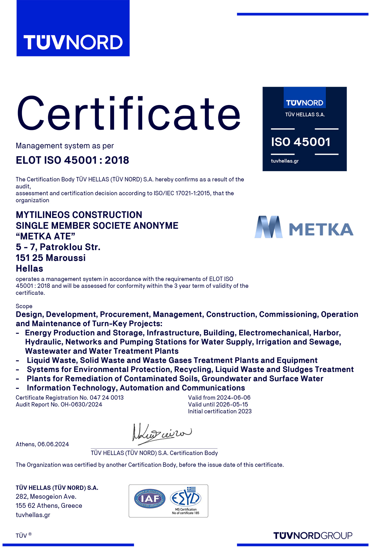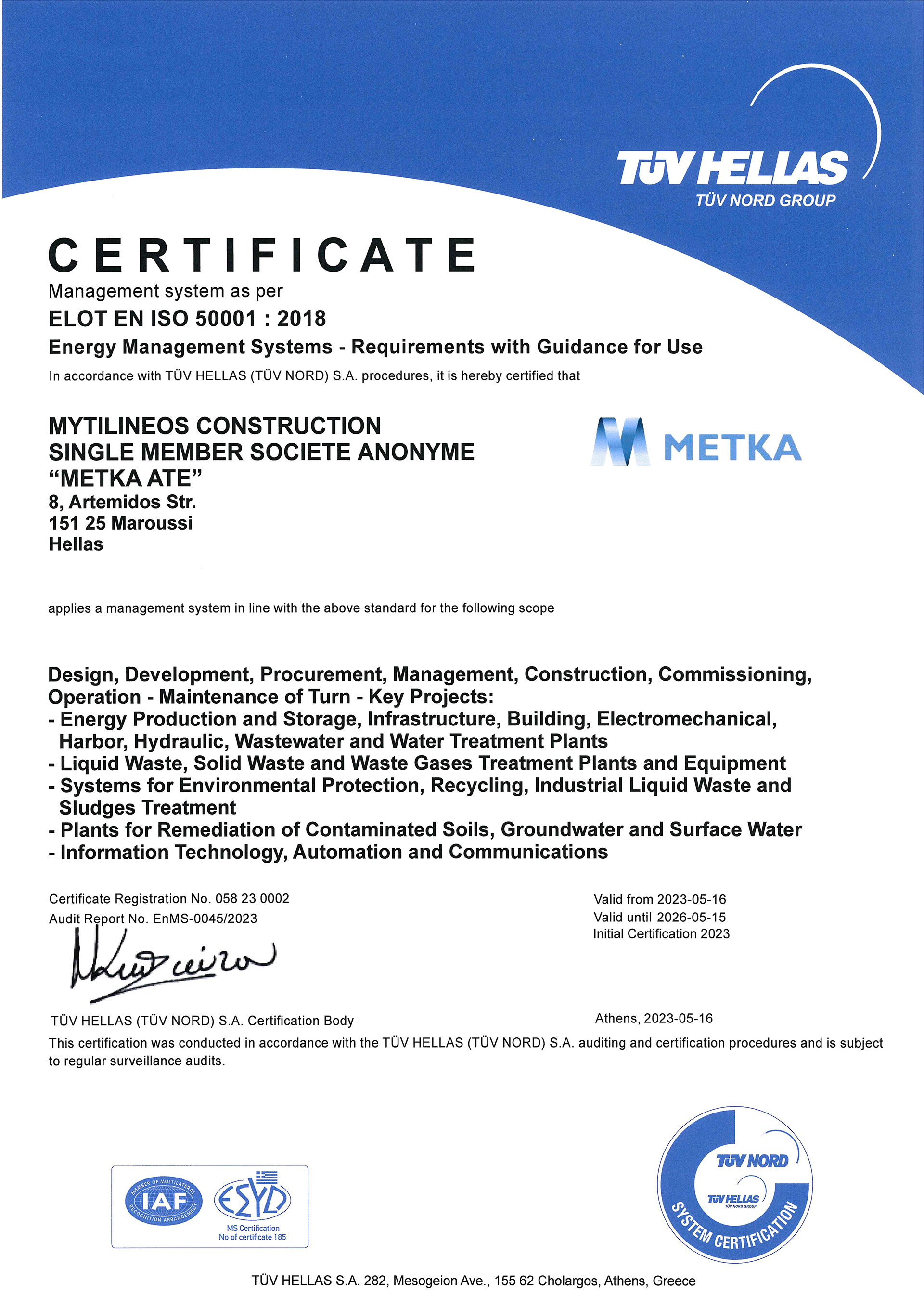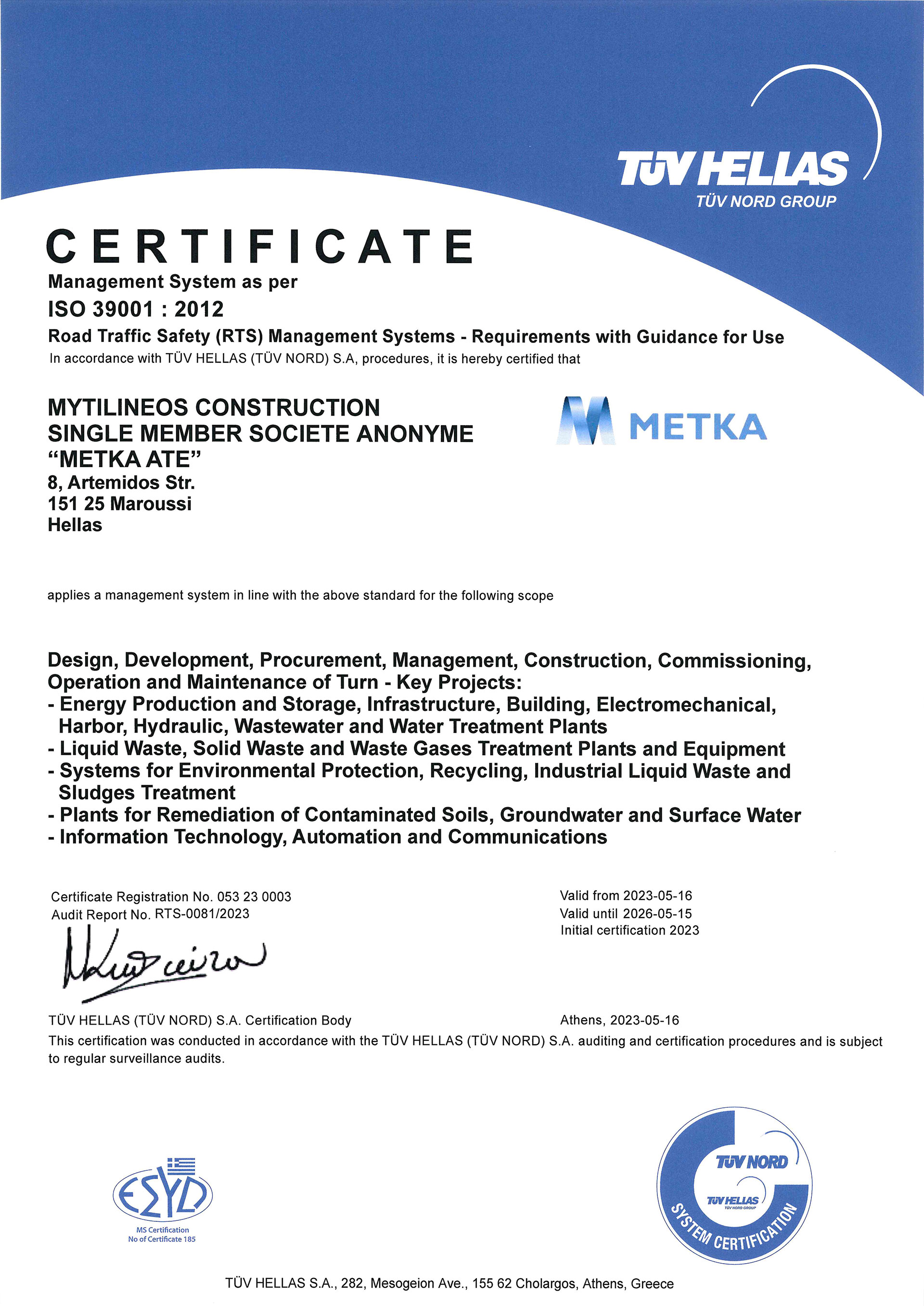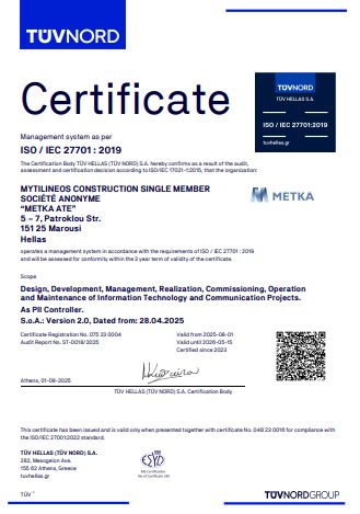 METKA ATE is committed to setting a high level of quality for project execution, to ensuring the occupational health and safety as well as road safety, to protecting the environment and reducing energy consumption, as well as securing data and privacy.