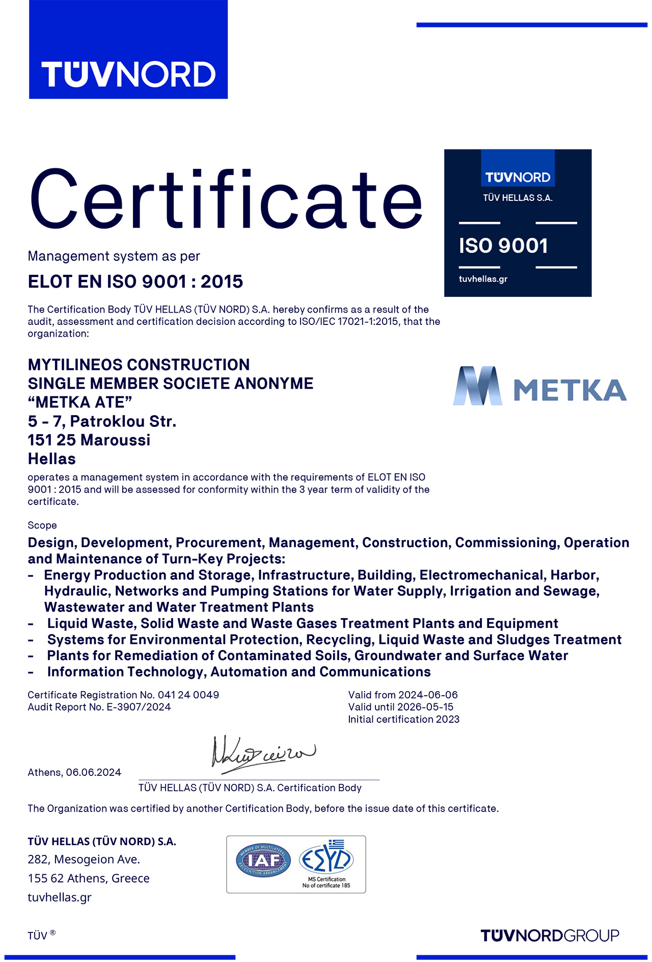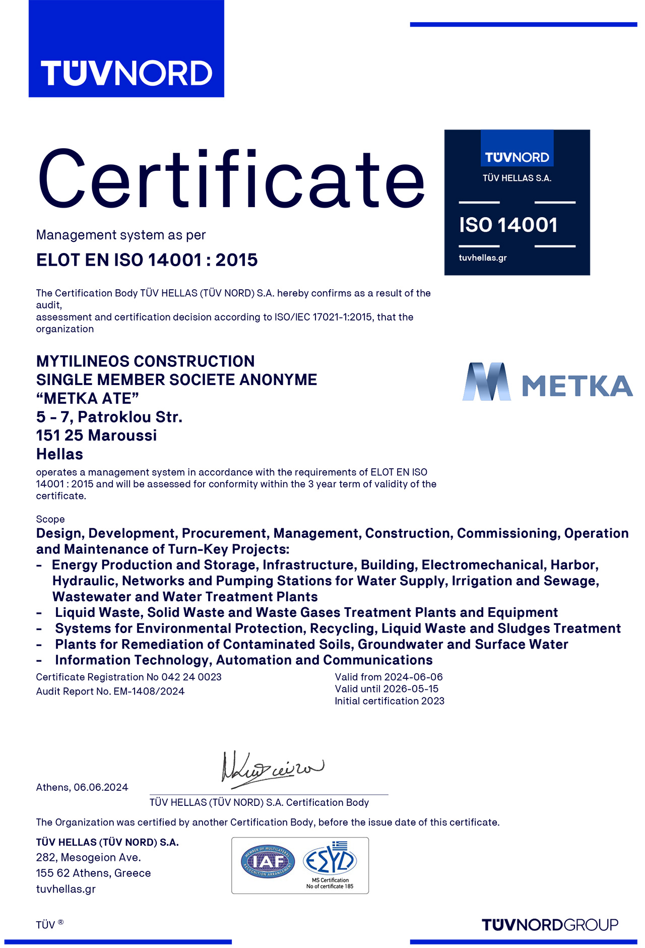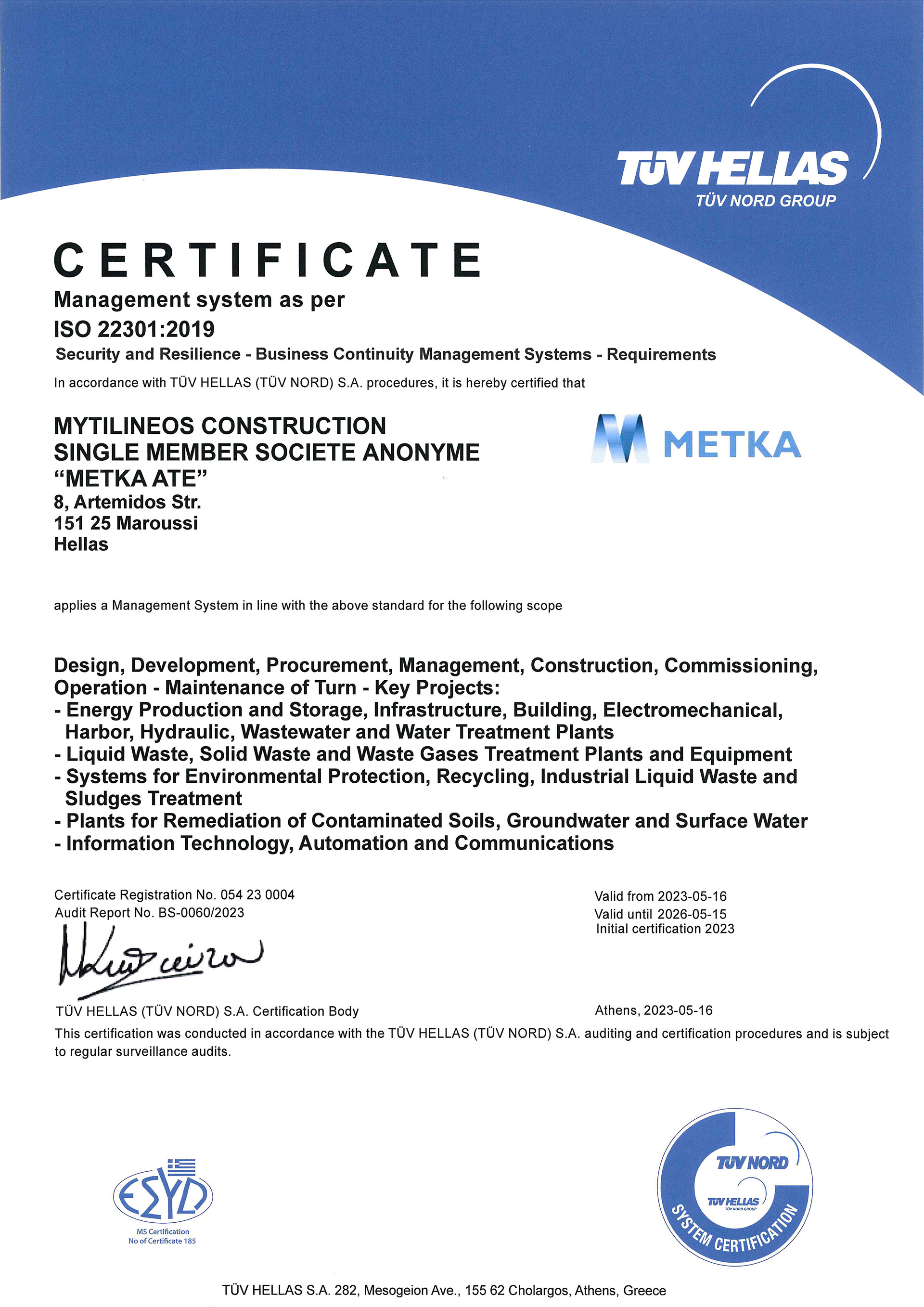 METKA ATE is committed to setting a high level of quality for project execution, to ensuring the occupational health and safety as well as road safety, to protecting the environment and reducing energy consumption, as well as securing data and privacy.